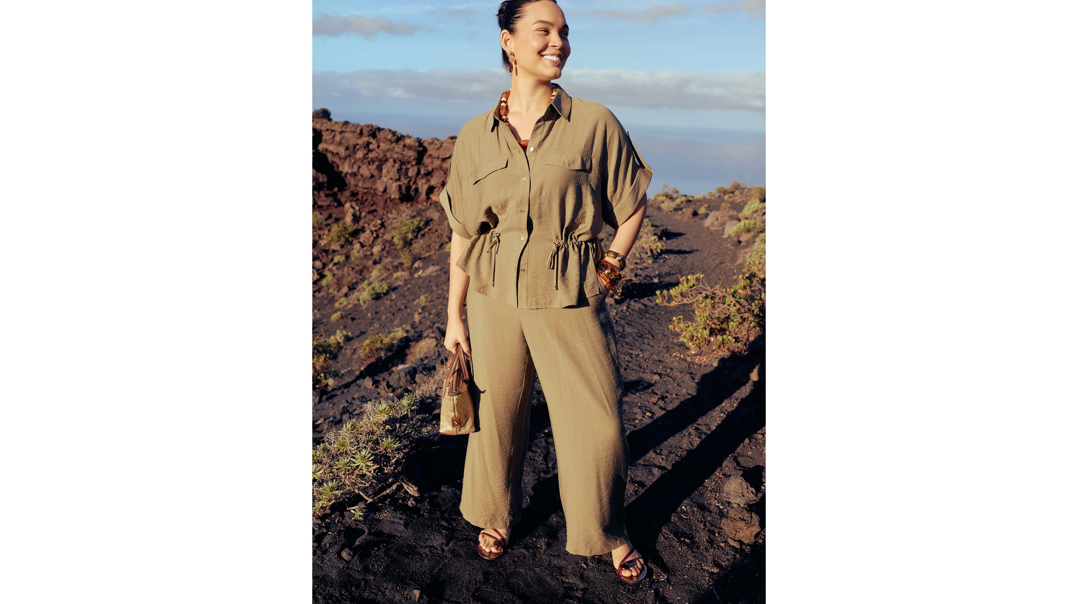 Vestidos fluidos, camisas estilo safari y tejidos naturales se combinan con detalles artesanales que aportan carácter y autenticidad.